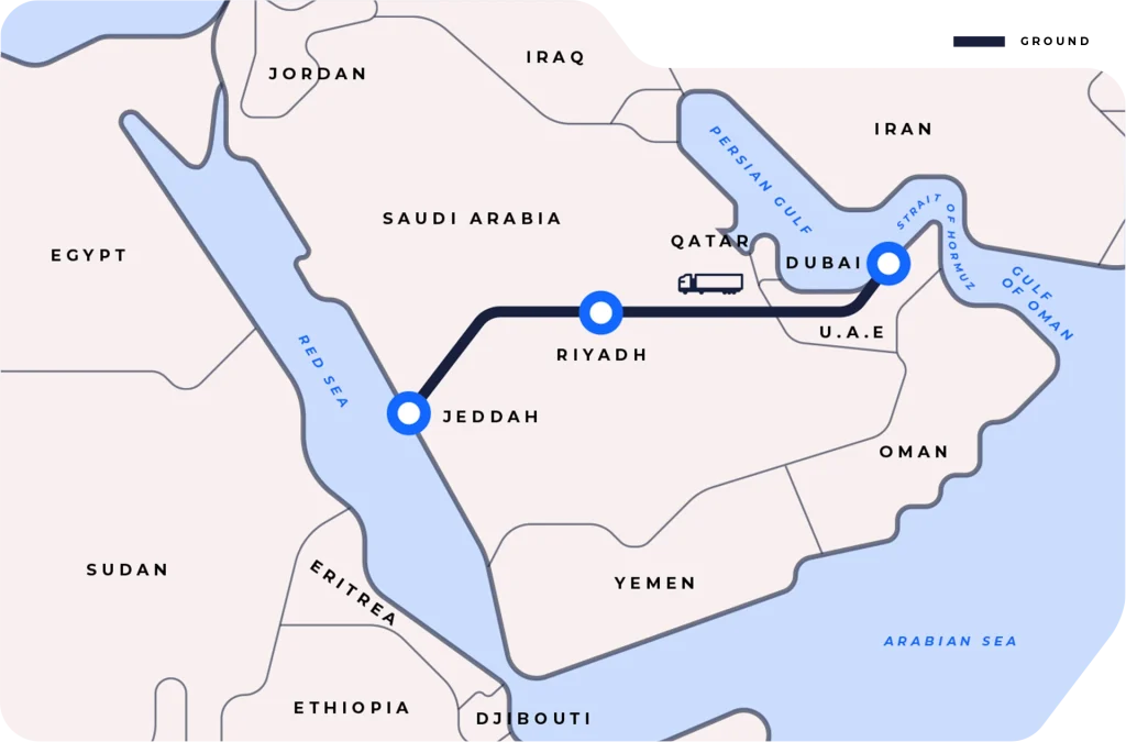 As of March 2026, the UAE–Saudi Arabia border (Al Ghuwaifat / Al Batha) remains open, allowing continuous cross-border logistics operations.